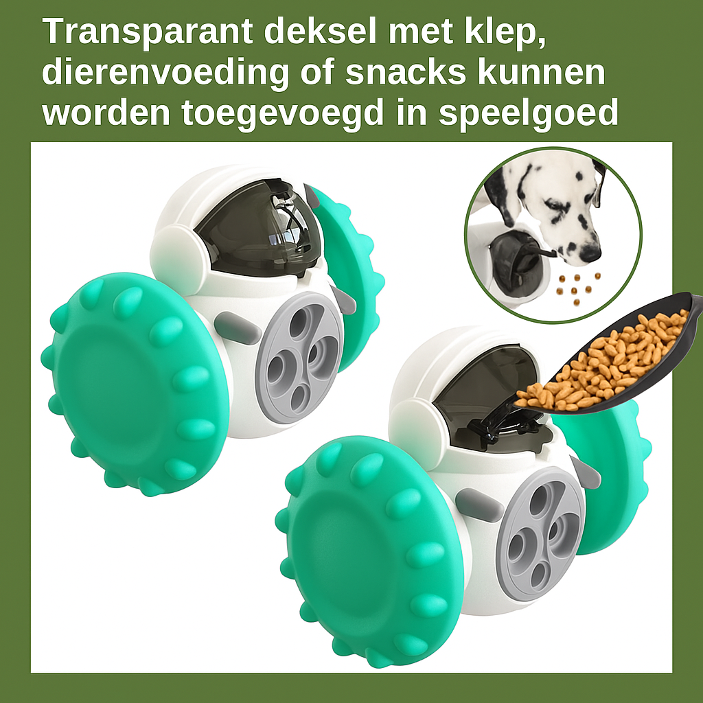 Chcesz, aby Twój pies lub kot jadł spokojniej i był jednocześnie stymulowany umysłowo? Dzięki tej interaktywnej zabawce do karmienia typu Tumbler połączysz jedzenie z zabawą. Chwiejąca się konstrukcja zachęca Twojego pupila do samodzielnego zdobywania karmy – idealne rozwiązanie przeciw nudzie i łapczywemu jedzeniu.