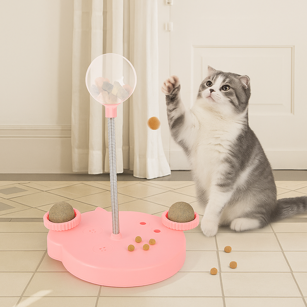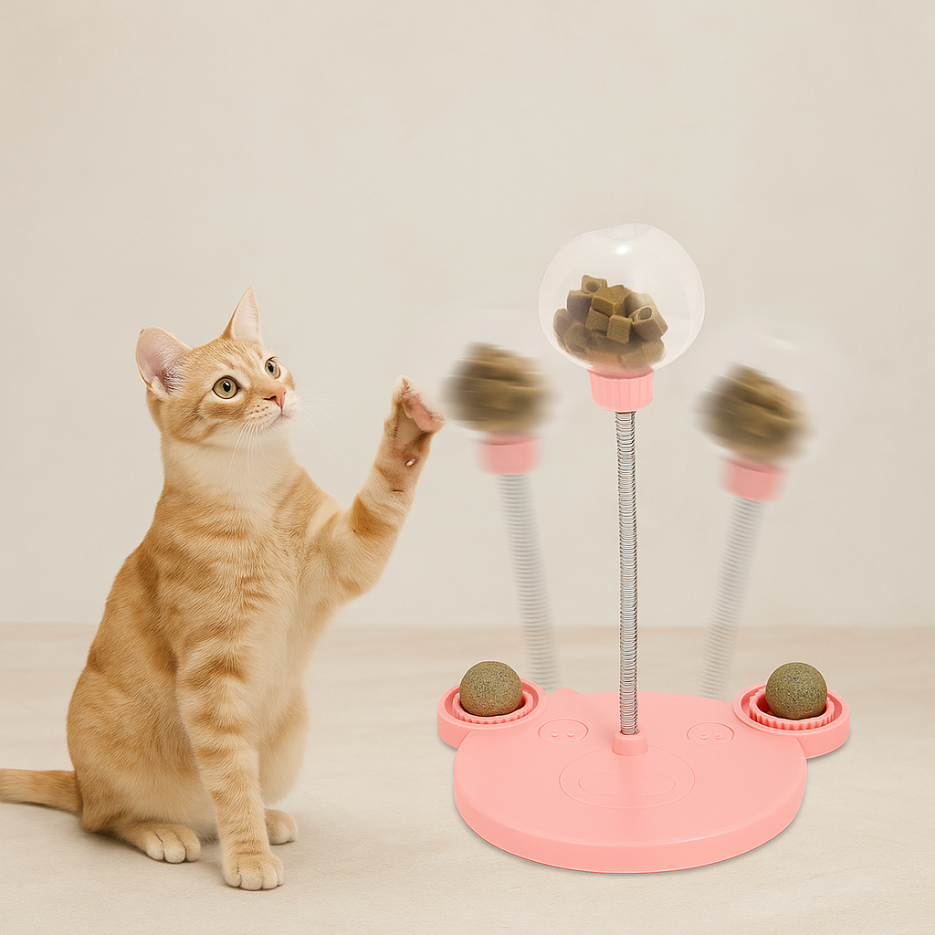 Czy Twój pies lub kot ma skłonność do łapczywego jedzenia? Dzięki tej interaktywnej misce na karmę i zabawce-puzzli czas posiłku staje się przyjemnym wyzwaniem. Chwiejna konstrukcja oraz kulki-monety zapewniają dodatkową zabawę, a jednocześnie Twój pupil automatycznie zaczyna jeść spokojniej.